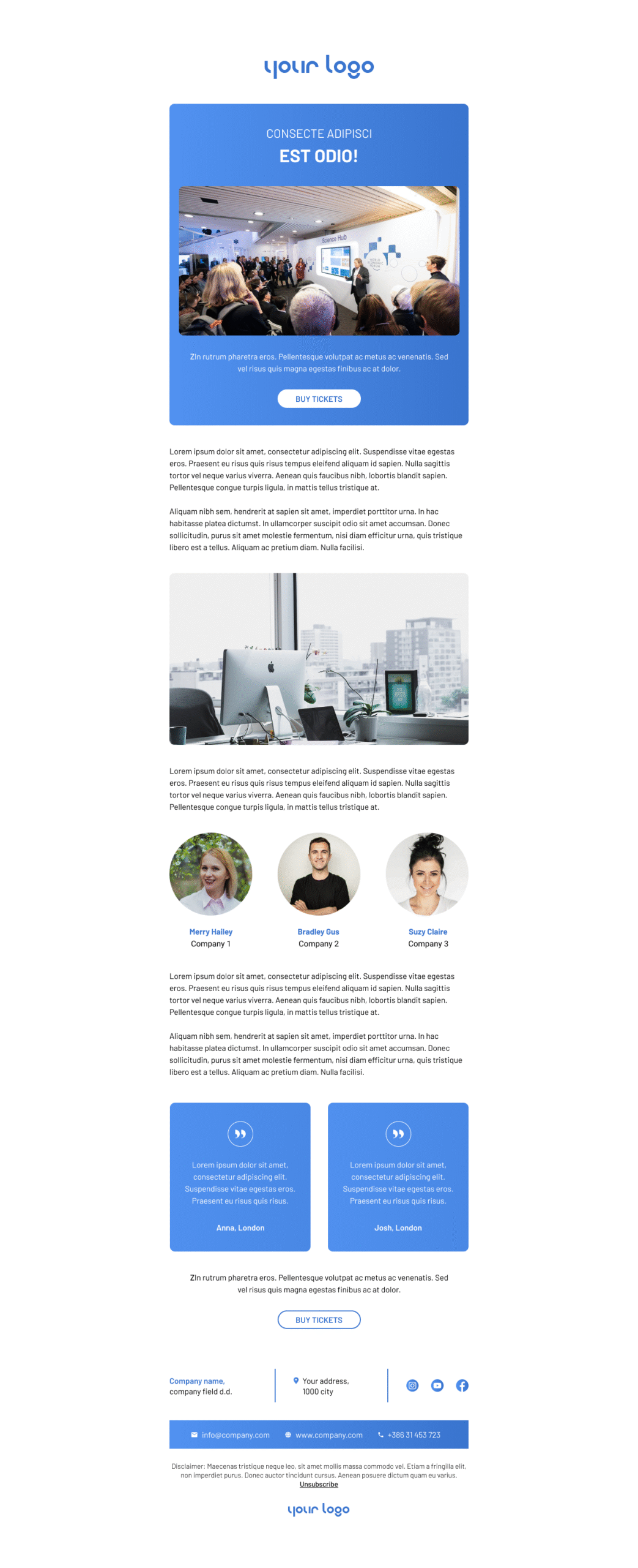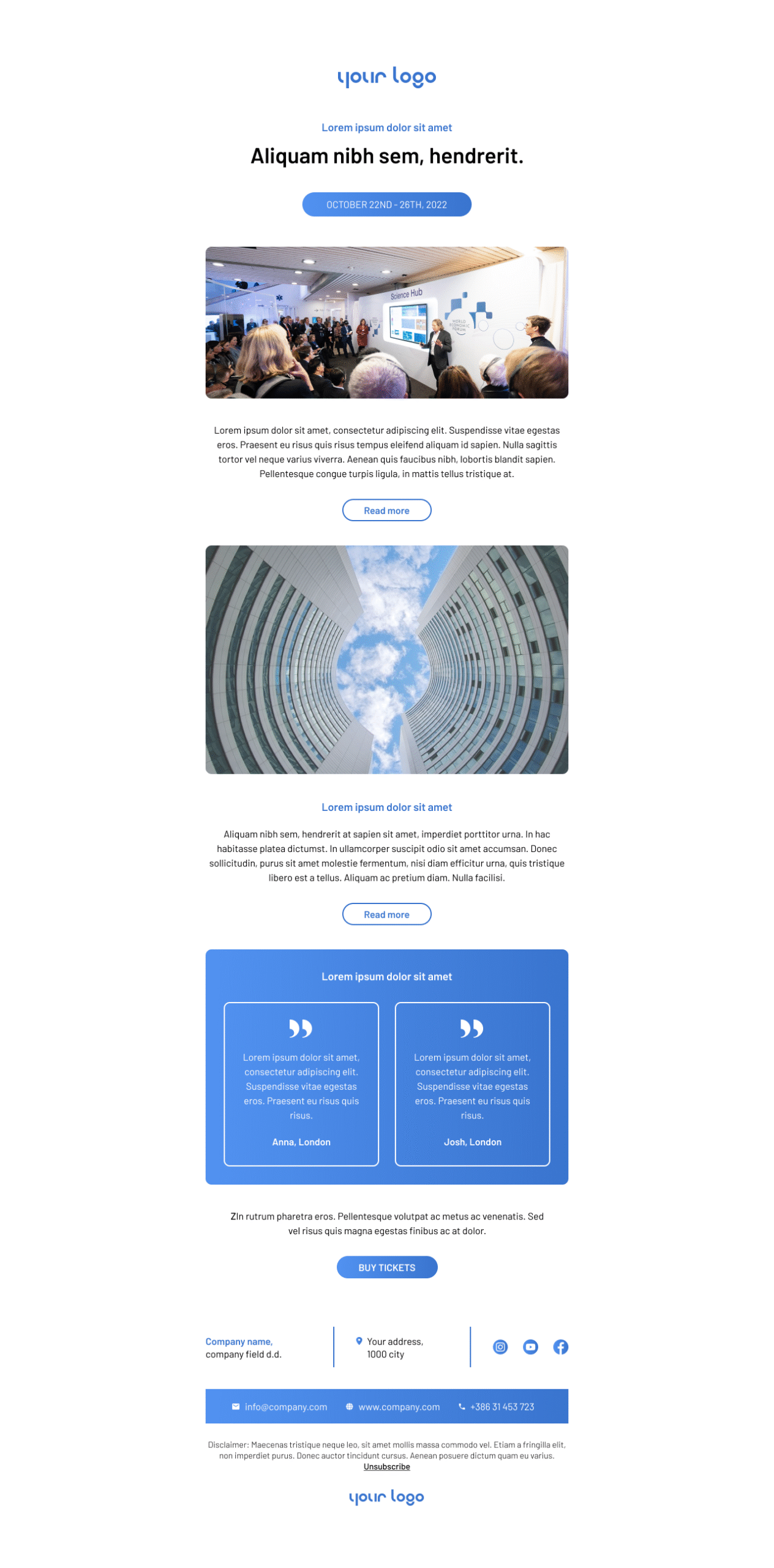 Responsive and Mobile-Friendly: Your event communications will look flawless whether viewed on desktops, tablets, or smartphones. Optimized to provide a seamless viewing experience across various screen sizes.